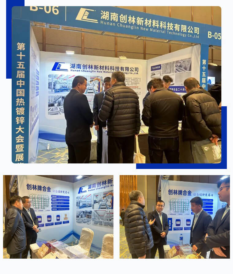 會上,湖南創(chuàng)林新材料展示了多款熱鍍鋅合金產(chǎn)品,這些產(chǎn)品在提高鍍鋅效果、降低鋅耗等方面表現(xiàn)出色,吸引了不少行業(yè)內(nèi)人士的關(guān)注??偨?jīng)理周業(yè)翔攜團(tuán)隊(duì)熱情接待參觀嘉賓,并就產(chǎn)品技術(shù)、市場開拓、合作發(fā)展等事宜與嘉賓進(jìn)行探討分享,交流互鑒。